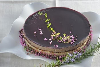 Die Bitterschokolade in grobe Stücke schneiden und ebenfalls über einem heißen Wasserbad schmelzen. Flüssige Schokolade gleichmäßig auf dem Biskuitboden verstreichen und fest werden lassen.